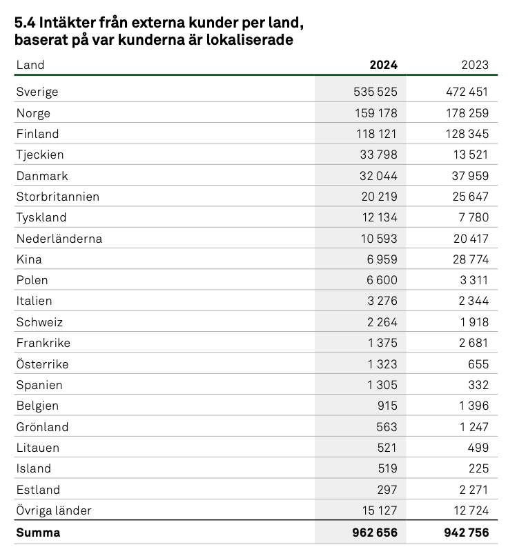 Över tid har det varit en tydlig trend med allt lägre försäljning mot bland annat Kina. År 2021 var försäljningen till Kina 40 miljoner, nu är den enbart 7 miljoner, det kan bero på att det är projekt som har levererat också.
