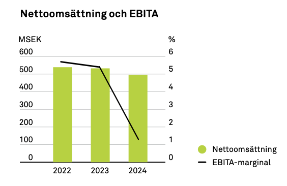 Mariginalerna under 2024 dyker och det har varit mycket fokus för ledningen att ta tag i de bekymmer som finns inom verksamhetsområdet. Vd, Caroline Reuterskiöld, förklarar i Q3 2024 att orderingången har varit sämre pga marknadsläge samt att det är svårare att förutse när större affärer går igenom. Under 2024 har mycket fokus varit från ledningen på Christian Berner. Vd tillträder sin nya roll 1a november 2024.