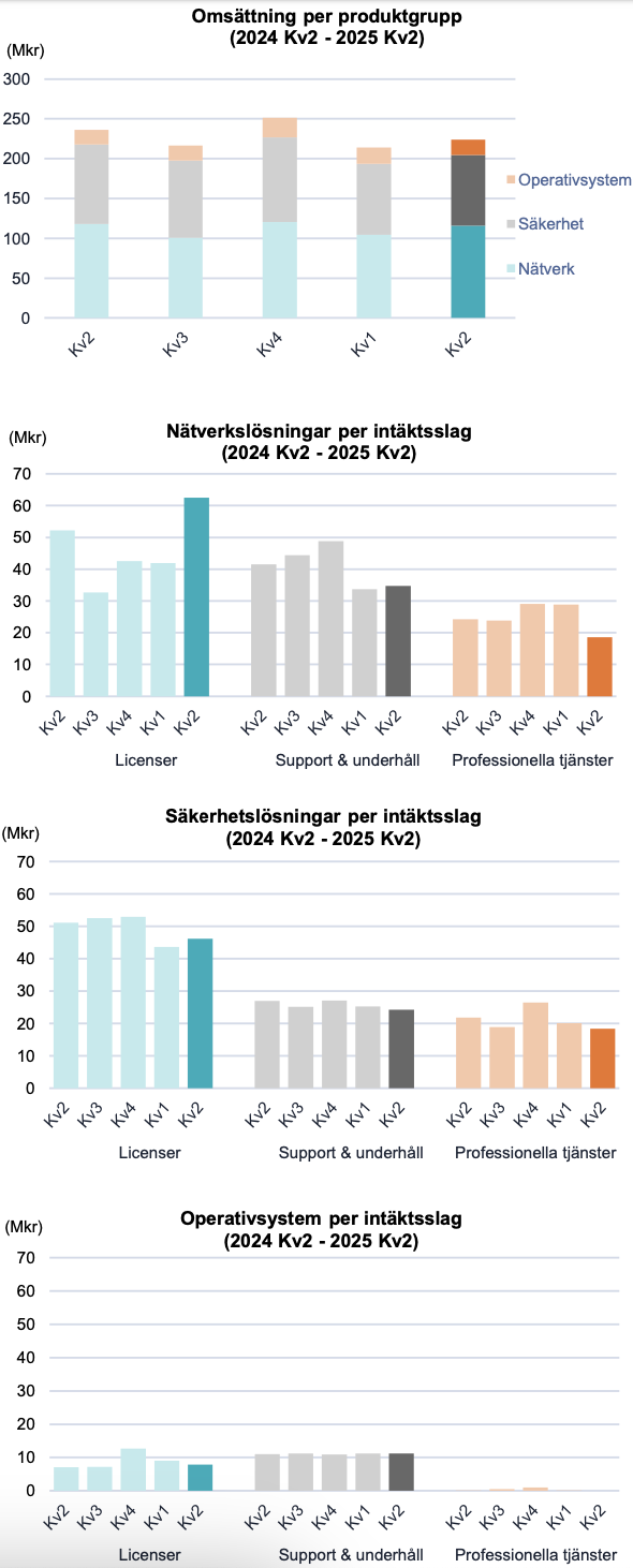Tillväxten för Nätverk är ganska slagig då historiskt har varit projektbaserad, men mer och mer går över till återkommande intäkter senaste kvartalen. Framåt tror jag att det finns bra anledning att tro att den stabiliseras på en högre tillväxt, när kontrakt som Enea vunnit tidigare börjar visa sig i siffrorna.