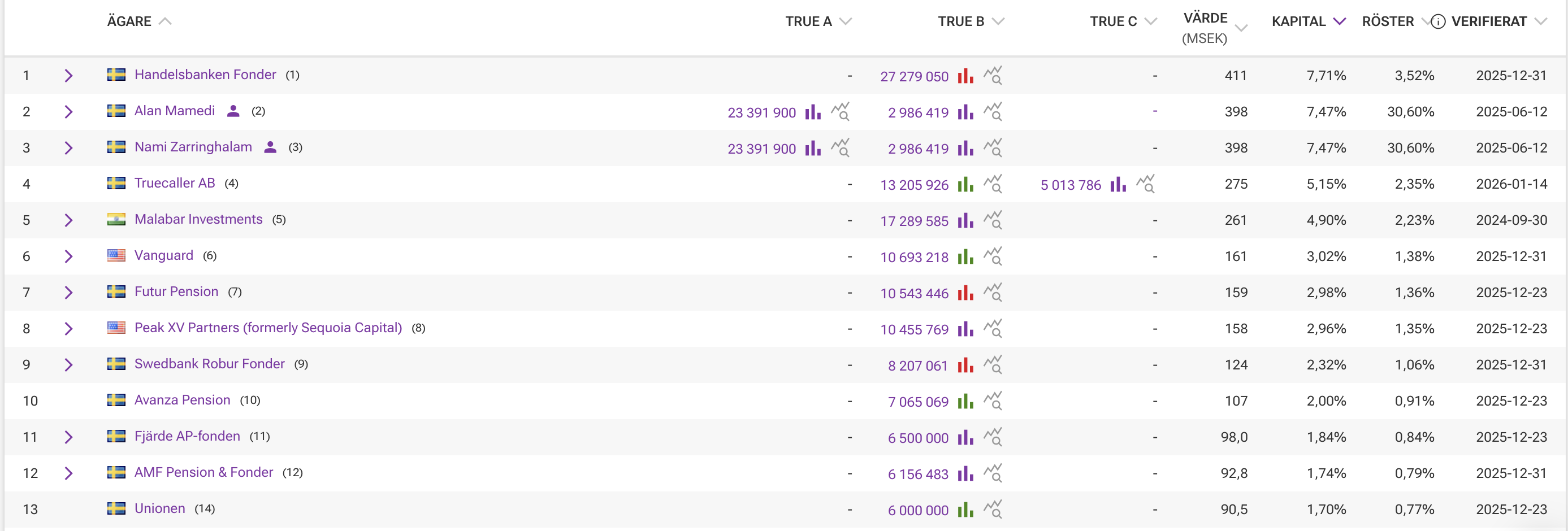 Truecaller är ett svenskt techbolag med en unik position som global ledare inom samtalsidentifiering och spam-blockering. Grundarduon är fortsatt operativt aktiva och har betydande ägande.