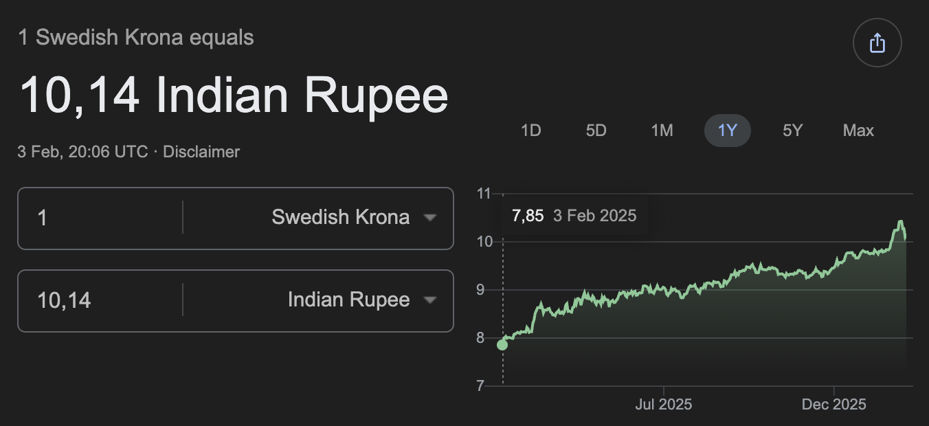 - Fortsatt valutamotvind: INR fortsätter tappa köpkraft mot SEK