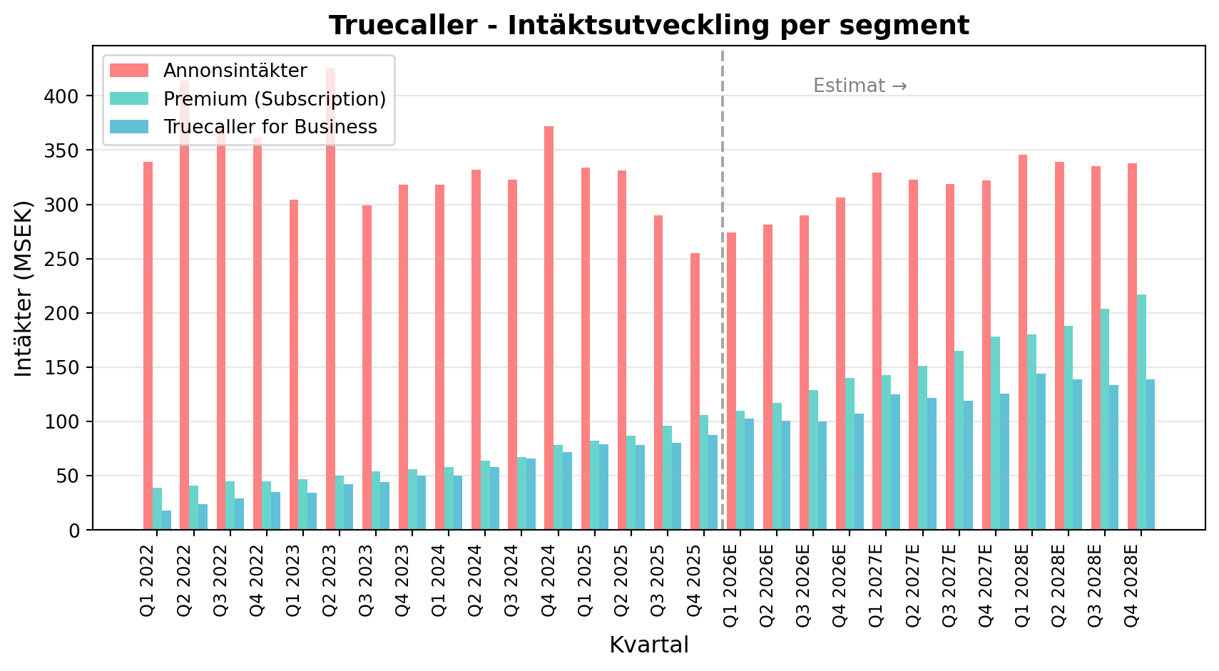 Utveckling: Annonsintäkterna har gått från 339 MSEK i Q1 2022 till 255 MSEK i Q4 2025, en betydande nedgång driven av externa faktorer.