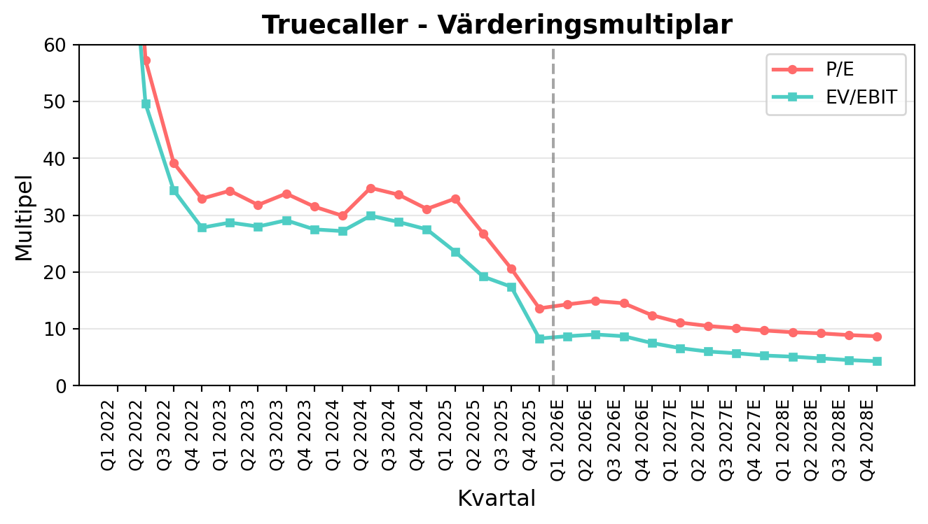 Med EV/EBIT på 6-8x för 2026E framstår Truecaller som attraktivt värderat för ett bolag med: