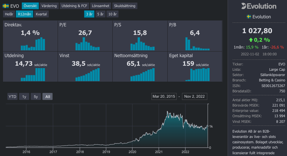 Från ett risk/reward perspektiv anser jag att det är intressant att äga Evolution.