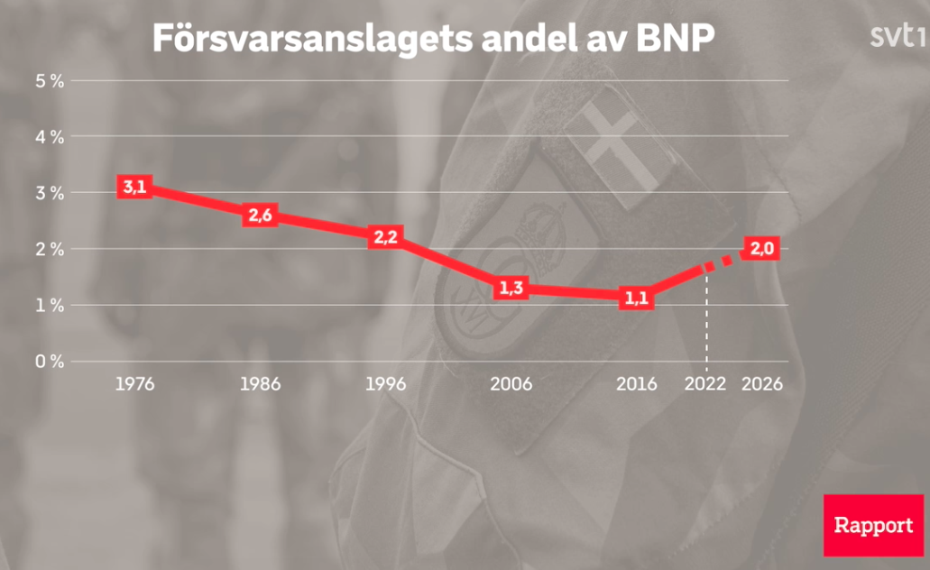 Under lång tid har Sverige haft en låg andel av sin BNP avsatt till försvaret jämfört med historiskt.