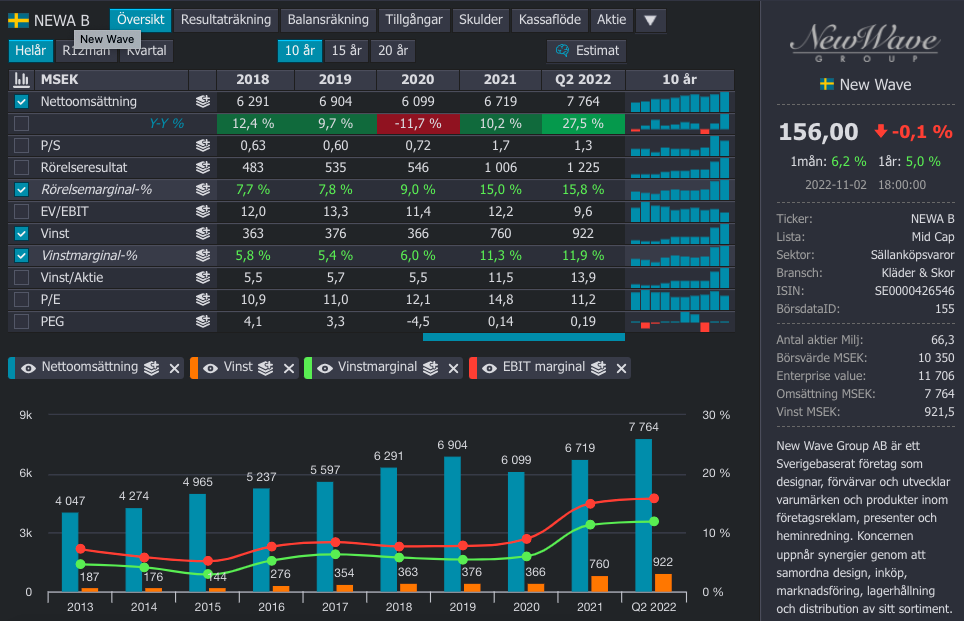 - Negativt med New Wave är att marginalerna antagligen är lite för höga för att var hållbara vilket kanske också innebär att bolaget är dyrt